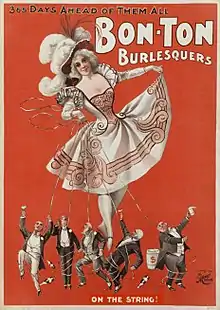 بورلسک در قرن بیستم و در امریکا، با شکلی از نمایش واریته که جذابترین بخش آن استریپتیز یا همان رقص برهنه (رقص توام با برهنگی تدریجی رقاصه) بود، همراه گشت.[2]