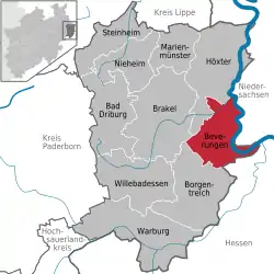 موقعیت Beverungen در منطقه Höxter ![]() | |