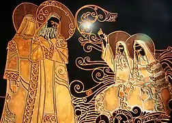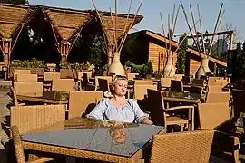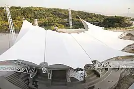 چادری ۷۰۵ متری، سکوهایی سیمانی و محوطه وسیع روبروی آن، آمفی تئاتر آب و آتش را تشکیل می دهند. این آمفی تئاتر، محوطه بازی است که با هدف برگزاری مراسم های مذهبی و آیینی، جشن ها و تئاترهای خیابانی ساخته شده است.[2]
