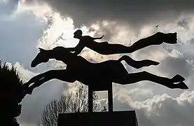 در انتهای بوستان آب و آتش و در مقابل ورودی این پارک از بلوار آفریقا، میدانی مستطیل شکل قرار دارد که به نام میدان مشاهیر شناخته می شود. در ابتدای این میدان دروازه ای به چشم می خورد که با سبک معماری اصیل ایرانی ساخته شده و دور تا دور آن نیز با مجسمه هایی از مشاهیر ایرانی تزئین شده است.