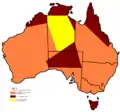 نقشهٔ توزیع و پراکنش استفادهٔ بومرنگ در استرالیا