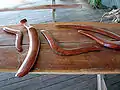 بومرنگ دو نوعاند؛ نوع اول، بسیار سنگین است و مستقیماً به هدف برخورد میکند. نوع دیگر سبکتر است و شکل آن به گونهای است که اگر با مهارت پرتاب شود، دوباره به سمت دستهای پرتابکننده بازمیگردد. جنس بومرنگ از چوب یا پلاستیک است.