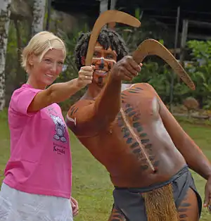 بومرنگ (به انگلیسی و فرانسوی: boomerang) یک سلاح و ابزار شکار و وسیله چوبی پرتابی است که عمدتاً بومیان استرالیا از آن استفاده میکردند. بومرنگ ۵۰٬۰۰۰ سال پیش اختراع شد. آنها نخستین اشیاء پروازی هستند که توسط انسان ساخته شدهاند. بومرنگ همچنین به عنوان ابزار موسیقی سنتی استفاده میشود.