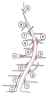 در سبکهای چند ساقه، تنههای جداگانه به گونهای دستهبندی میشوند که نامتقارن بوده و در یک خط مستقیم نباشند.