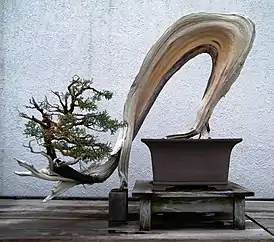 حذف پوست درخت از یک بونسای احساس چوب مرده را ایجاد میکند. این باعث میشود پیرتر به نظر برسد و به نظر میرسد حوادثی مانند بیماری، طوفان یا رعد و برق را تحمل کرده است. ایده پشت این امر این است که بونسای از طرف تماشاگر جذاب میشود.