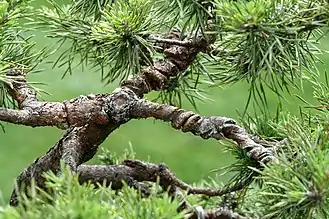 بعضی از سبکهای بونسای به شاخههای پیچ خورده و تنه احتیاج دارند. اینها به گیاه ظاهری قدیمی و بادخورده میدهند، تاثیری که با کم کردن نسبی پوست درخت میتواند افزایش یابد.