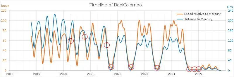 | ۵ دسامبر ۲۰۲۵ | ورود به مدار عطارد | از هم جدا شدن فضاپیما؛ ۳٫۷۵ سال عطارد پس از ششمین پرواز کناری عطارد |