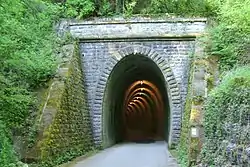 ![]() Western side of the old railway tunnel built in 1901, now converted to a bicycle route | |
