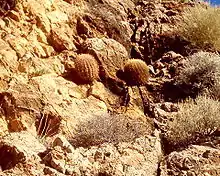 کاکتوسهای خمرهای در رودخانهٔ ویرجین جورج، آریزونا