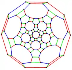 این چندوجهی دارای ۶۲ وجه است: ۳۰ مربع، ۲۰ شش ضلعی منظم و ۱۲ ده ضلعی منظم. یعنی دارای بیشترین یالها و رئوس در اجسام افلاطونی و ارشمیدسی است، در حالی که snub dodecahedron وجههای بیشتری دارد.