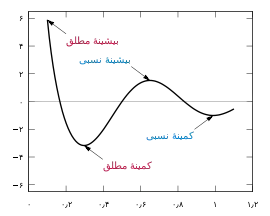 پس با بررسی نقاط بحرانی و ابتدا و انتهای بازه و پیدا کردن بیشترین و کمترینشان میتوان اکسترممها را پیدا کرد.