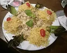 ![]() بیف استراگانف همراه با سس و سایر تزیینات | |