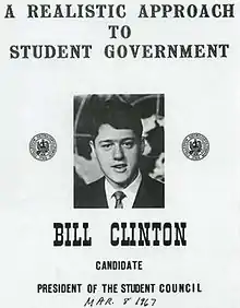 در سال ۱۹۶۳ دو لحظهٔ بسیار تأثیرگذار در جوانی کلینتون رخ داد که به وی در تصمیم برای خدمت عمومی کمک کردند. یکم دیدار وی از کاخ سفید به عنوان عضو مجلس دانشآموزی کشور و دیدن رئیسجمهور جان اف. کندی و دومی سخنرانی بسیار معروف مارتین لوتر کینگ جونیور با نام «رؤیایی دارم» بود که کلینتون همه این سخنرانی را حفظ کرد.