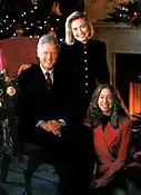 به همراه همسرش هیلاری و دخترش چلسی در پرتره کریسمس کاخ سفید (۱۹۹۷)