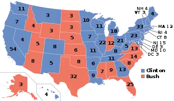 میزان تأیید بوش در طول جنگ خلیج فارس حدود ۸۰ درصد بود و او را در انتخابات شکست ناپذیر پیشبینی میکردند. وقتی بوش با دموکرات ها مصالحه کرد تا کسری های فدرال را کاهش دهد، او قول خود مبنی بر عدم افزایش مالیات را زیر پا گذاشت، که این امر به میزان تأیید وی لطمه زد. کلینتون بارها و بارها بوش را به خاطر قولی که نتوانست به آن عمل کند، محکوم کرد. در زمان انتخابات ، اقتصاد رو به زوال بود و بوش شاهد کاهش میزان تأیید خود بود که به کمی بیش از ۴۰ درصد رسیده بود. [18][19] جمهوریخواهان که قبلاً با مواضع ضد کمونیستی متحد میشدند، با پایان جنگ سرد، حزب را فاقد مسئلهای متحد کننده یافتند. بسیاری از دموکرات هایی که در انتخابات های قبلی از رونالد ریگان و بوش حمایت کرده بودند، اینبار حمایت های خود را از کلینتون اعلام کردند. [۸۲] کلینتون و جفت انتخابیاش برای معاونت ریاست جمهوری، ال گور ، در هفته های آخر مبارزات انتخاباتی کشور را گشتند، حمایت ها را جلب کردند و "آغازی جدید" را متعهد شدند.