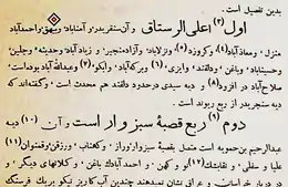 - نام مردی است در روزگار بهمنالملک که دیهی (روستایی) را در این ناحیه بنیان گذاشتهاست.[7]