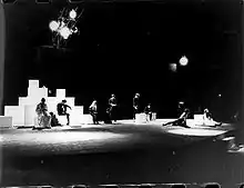 - مهندس هوشنگ کبیر. آتلیه تئاتر و بیژن محتشم برای دومین جشن هنر شیراز در شهریور ۱۳۴۷ انجمن اطلاعات بانوان ۱۳۴۷ و ۱۳۴۸ پخش تلویزیونی. این نمایش به علت سختی اجرا. " چون نمایش موزیکال بود و بازیگران جوان به صورت پلی بک اجرا شد.
