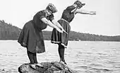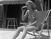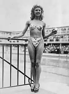 لباس شناهای دوتکه دامندار قبل از جنگ جهانی دوم و جیرهبندی پارچه در آمریکا محبوب بودند.[40] |