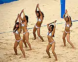- "Beach volleyball's bikini cheerleaders stir up a storm". NBC sports. August 17, 2004. Archived from the original on March 17, 2008. Retrieved March 12, 2008.