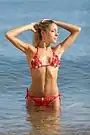 | بیکینی اسلینگ | ![]() | — | بیکینی اسلینگ (همچنین اسلینگکینی، وانپیسکینی یا لباس شنای اسلینگ) لباس شنایی است پیوسته و عملاً یکتکه که تداعیگر یک پایینتنه بیکینی است که نوارهایی در طرفین آن به بالا کشیده شدهاند تا پستانها را بپوشانند و سر شانه بروند یا به دور گردن بسته شوند و نوارهای دیگری در میانتنه آن را در جای خود نگه داشتهاند.[146]