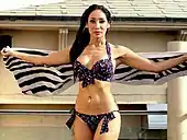 تانکینی لباس شنایی است که بالاتنهٔ آن زیرپوش رکابی و پایینتنهٔ آن شورت بیکینی باشد.[132][153][154] جنس تانکینی ممکن است اسپندکس و پنبه یا اسپندکس و نایلون باشد[155] این مدل را ان کول در سال ۱۹۹۸ به بازار معرفی کرد.[132][156] در گونهای از تانکینی موسوم به کمکینی[persian-alpha 17] به جای زیرپوش رکابی از تاپهایی با بند رشتهای استفاده میشود.[157] |