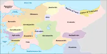 نقشه بیگنشینهای مستقل تُرک در آناتولی طی قرن 14 میلادی