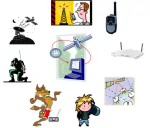 تلویزیون broadcasts, ریزموج ovens, mobile phones, wireless LAN, بلوتوث، GPS and two-way radios such as Land Mobile, FRS and GMRS radios, amateur radio |