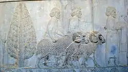 - انجام قربانی و نوشیدن هوم: مراسم قربانی کردن گاو و نوشیدن هوم همراه با جشنهای پرخرج و باشکوهی بود، این مراسم بدون آنکه به طبقات ثروتمند لطمهای بزند، طبقات کشاورز و چوپان را ضعیف و فقیر میکرد و ظاهراً به همین سبب در نزد زرتشت با نظر قبول نگریسته نمیشد.[57] ولی ذکر برگزاری این گونه آیینهای قربانی در یشتها (بخشی از اوستا) میرساند که این رسم بعد از زرتشت نیز همچنان بر جای مانده و دوام داشتهاست.[58]