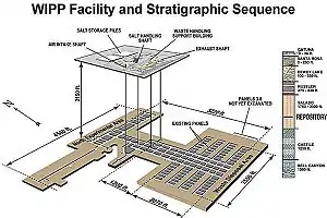 ضایعات هستهای در WIPP در عمق ۲۱۵۰ پا زیر سطح زمین، و در میان یک قشر ثابت نمکی در نیومکزیکو دفن میگردد.