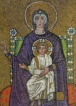 موزائیکی به نام «تئوتوکوس، والدهٔ خدا بر تخت سلطنت».