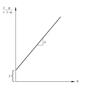 در این رابطه حجم مورد نیاز از گاز برای تشکیل یک تک لایه، حجم کل گاز جذب شده، و به ترتیب فشار مورد آزمایش و فشار اشباع میباشد. همچنین مقدار پارامتر بر اساس رابطه زیر محاسبه میشود: