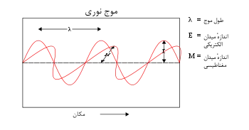 تابش الکترومغناطیسی پدیدهای موجی است که در فضا منتشر میشود و از میدانهای الکتریکی و مغناطیسی ساخته شدهاست. این میدانها در حال انتشار، بر یکدیگر و بر جهت پیشروی موج عمود هستند.