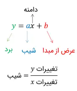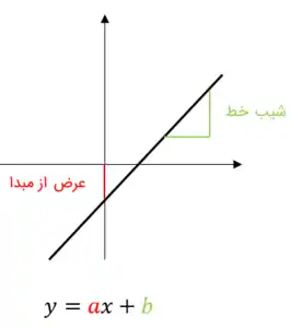 شکل تابع خطی و مشخص شدن عرض از مبدا و شیب خط