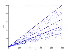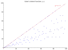 خط y = n-1 یک کران بالا برای تابع است و زمانی رخ میدهد که n اول باشد.
