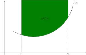 در ریاضیات، تابع محدب (به انگلیسی: Convex Function) (یا تابع کوژ[1][2])، تابع حقیقی-مقداری است که روی بازه n-بعدی تعریف شده و پاره خط بین هر دو نقطه از نمودار آن بالای نمودار بین آن دو نقطه قرار گیرد. به طور معادل، یک تابع محدب است اگر اپیگراف (مجموعه نقاط رو یا بالای نمودار تابع) آن مجموعه ای محدب باشد. تابع تک متغیره، دوبار دیفرانسیلپذیر است اگر و تنها اگر مشتق دوم آن روی تمام دامنه نا-منفی باشد.[3] مثالهای شناخته شده از توابع محدب تک-متغیره شامل تابع مربعی و تابع نمایی می باشد. به بیان ساده، تابع محدب، تابعی است که به شکل (cup) و تابع مقعر به شکل (cap) است.