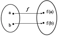 اولین حالت اینکه ممکن است به ازای هر y متعلق به برد تابع f، تنها یک x در دامنه موجود باشد که (y=f(x. این شرط را میتوان چنین فرمول بندی کرد که اگر به ازای x1,x2∈X داشته باشیم (f(x1)=f(x2 آنگاه x1=x2 یا: