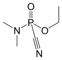دیگر نامها GA; Ethyl dimethylphosphoramidocyanidate; Dimethylaminoethoxy-cyanophosphine oxide; Dimethylamidoethoxyphosphoryl cyanide; Ethyl dimethylaminocyanophosphonate; Ethyl ester of dimethylphosphoroamidocyanidic acid; Ethyl phosphorodimethylamidocyanidate; Cyanodimethylaminoethoxyphosphine oxide; Dimethylaminoethodycyanophosphine oxide; EA1205 | |