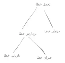 - پردازش خطا: در این رویکرد سامانه دو راه دارد، یا به دنبال پاک کردن خطا است که بازیابی خطا نام دارد یا با استفاده از نسخه برداری این کار را انجام میدهد که جبران خطا نام دارد.