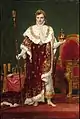 چهرهنگاری ناپلئون اثر ژاک-لویی داوید در حالی که او حمایل سلطنت از جمله عصای سلطنتی و تاج برگ زرین را با خود دارد؛ تاج اصلی ناپلئون در گوشه نگاره قابل مشاهده است.