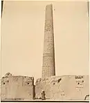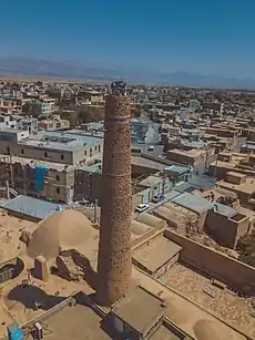 در جنب مسجد تاریخانه سمت شمال مناری وجود دارد که با آجر ساخته شده. ارتفاع این منار ۲۶ متر است و ۸۶ پله از داخل دارد، محیط آن در پایین در حدود ۱۳ متر میباشد و به نسبت ارتفاع منار از سطح زمین از محیط آن کاسته میشود بهطوریکه دور منار در بالا ۸/۶ متر است، این منار سکو ندارد و از روی زمین مدور ساخته شده. نقوشی از آجر در روی منار هست که به منزلهٔ نما و تزیین آن محسوب میشود، در ارتفاع ۵/۱۰ متری کتیبهای از آجر به خط کوفی است به عرض ۳۰/۱ متر که فقط «الامیر السید الاجل» از آن خوانده میشود. آجرهایی که در ساختمان داخلی به کار رفته به قطر ۴ تا ۵/۴ سانتیمتر و به طول و عرض ۲۲ سانتیمتر و آجرهایی که در تزیینات خارجی مصرف شده به طول ۵/۱۷ و به عرض ۱۷ و به قطر ۵/۳ سانتیمتر میباشد.[4]
