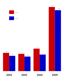 اما با وجود این، در ماه ژوئن سال ۲۰۰۵، بوئینگ ودولت ایالات متحده آمریکا مسئله اختلاف و مشاجره را دوباره به WTO ارجاع کردند، و ابراز داشتند که ایرباس کمکهای مالی غیرقانونی از دولتهای اروپایی دریافت کردهاست. ایرباس هم علیه بوئینگ شکایت کرد و پرونده را دوباره به اجرا گذاشت و همچنین بوئینگ را متهم کرد که کمکهای مالی غیرقانونی از دولت ایالات متحده آمریکا دریافت کردهاست.