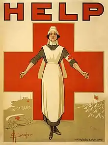 یک پوستر جذب نیروی نیروی دریایی آمریکا در جنگ جهانی دوم که یک پرستار نظامی را در یک کشتی بیمارستان نشان میدهد.