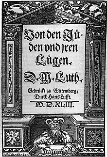 مارتین لوتر که سرمنشاء جنبش پروتستان بود دیدگاه های یهودستیزانه زیادی داشت. او این دیدگاه را در یک نوشتار به نام درباره یهودیان و دروغهای آنان بیان کردهاست. او سفارش برخورد بسیار سختی با یهودیان میدهد و حتی میگوید که مسیحیان به خاطر نکشتن آنان خلافکارند.