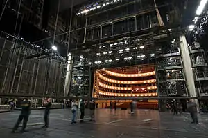 نمایی از فضا و تجهیزات پشت سن تالار اپرای وین.