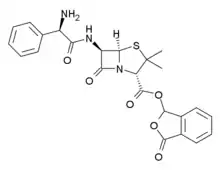 3-oxo-1,3-dihydro-2-benzofuran-1-yl (2S,5R,6R)-6-{[(2R)-2-amino-2-phenylacetyl]amino}-3,3-dimethyl-7-oxo-4-thia-1-azabicyclo[3.2.0]heptane-2-carboxylate | |