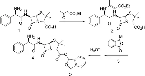 - مشارکتکنندگان ویکیپدیا. «Talampicillin». در دانشنامهٔ ویکیپدیای انگلیسی، بازبینیشده در ۳۱ مه ۲۰۱۸.