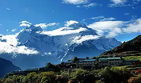 ![]() Dole village and Mt. Thamserku (to the right) and کانگتگا (to the left) in the background | |