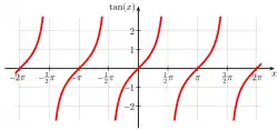نمودار تابع تانژانت به شکل روبهرو است. این تابع: