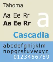 - مشارکتکنندگان ویکیپدیا. «Tahoma (typeface)». در دانشنامهٔ ویکیپدیای انگلیسی.
