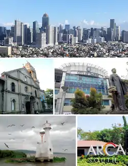 ![]() (From top, left to right): Bonifacio Global City, Archdiocesan Shrine of Saint Anne , Taguig City Hall, Napindan Parola, Arca South | |